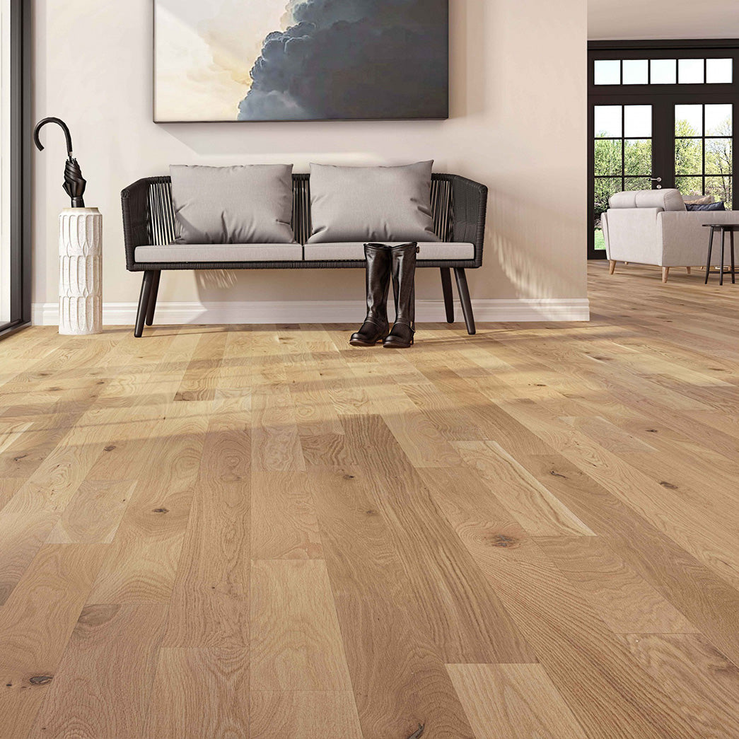 Experience the timeless beauty of solid hardwood, installed with precision to bring natural elegance to your space.